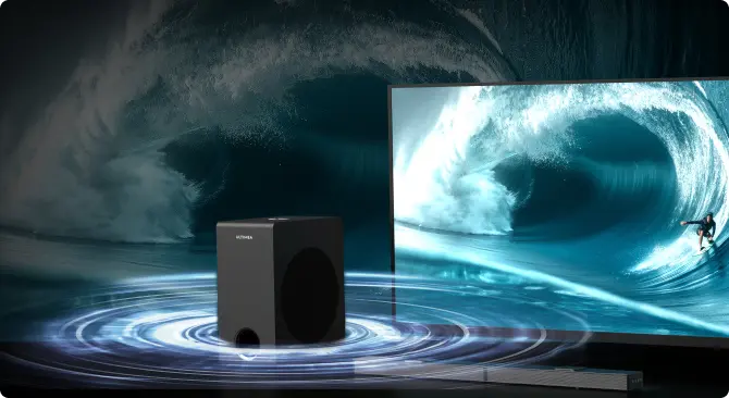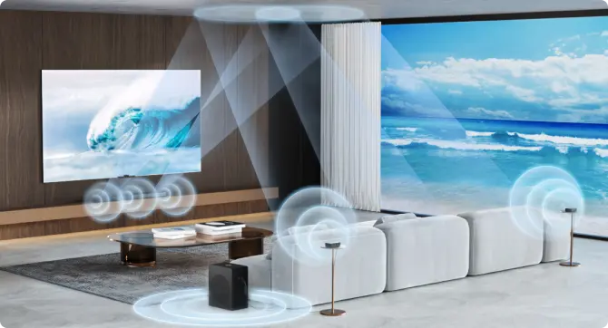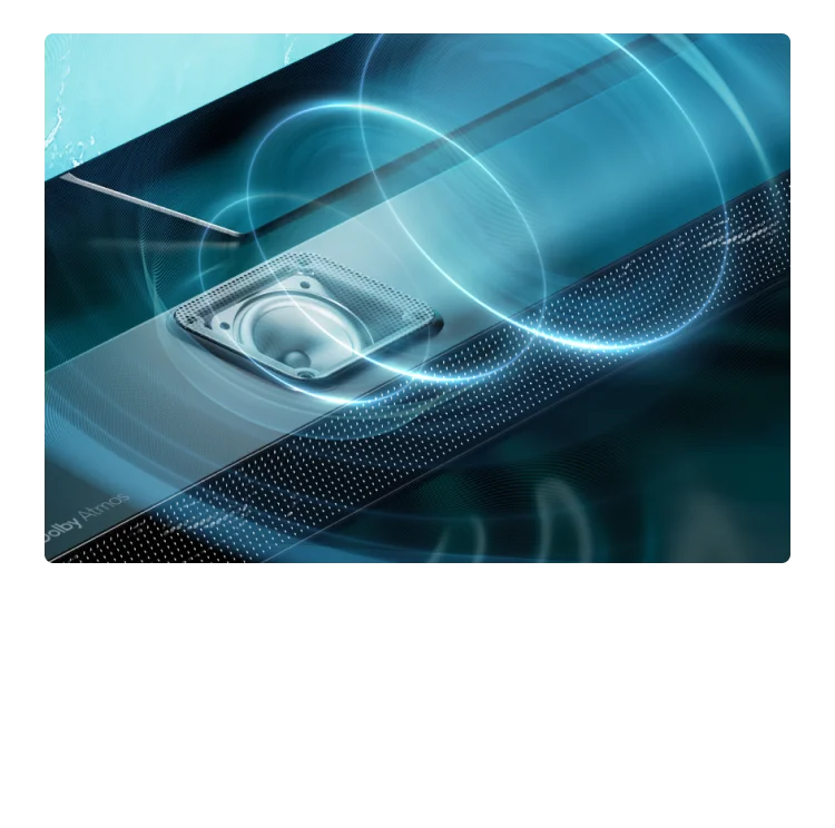 Dolby atmos with up-firing speakers for more realistic and encompassing surround sound.