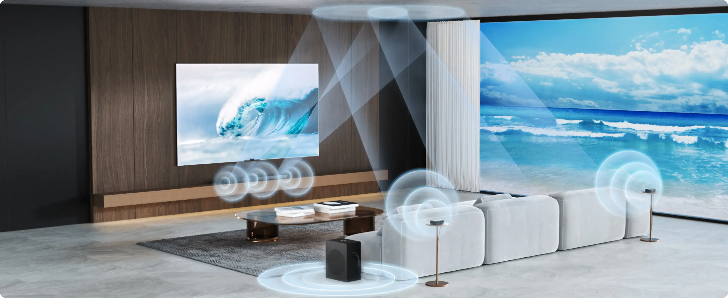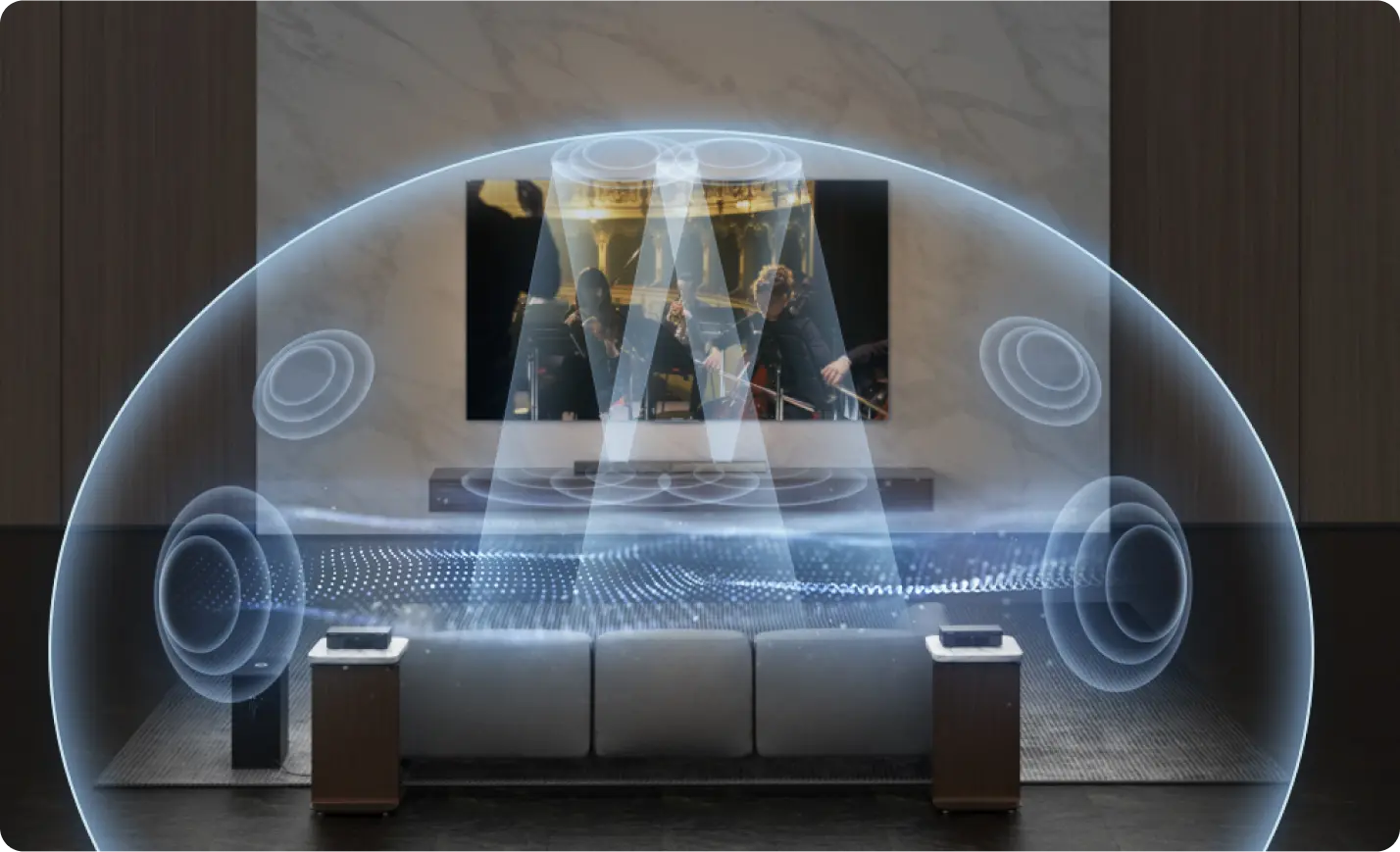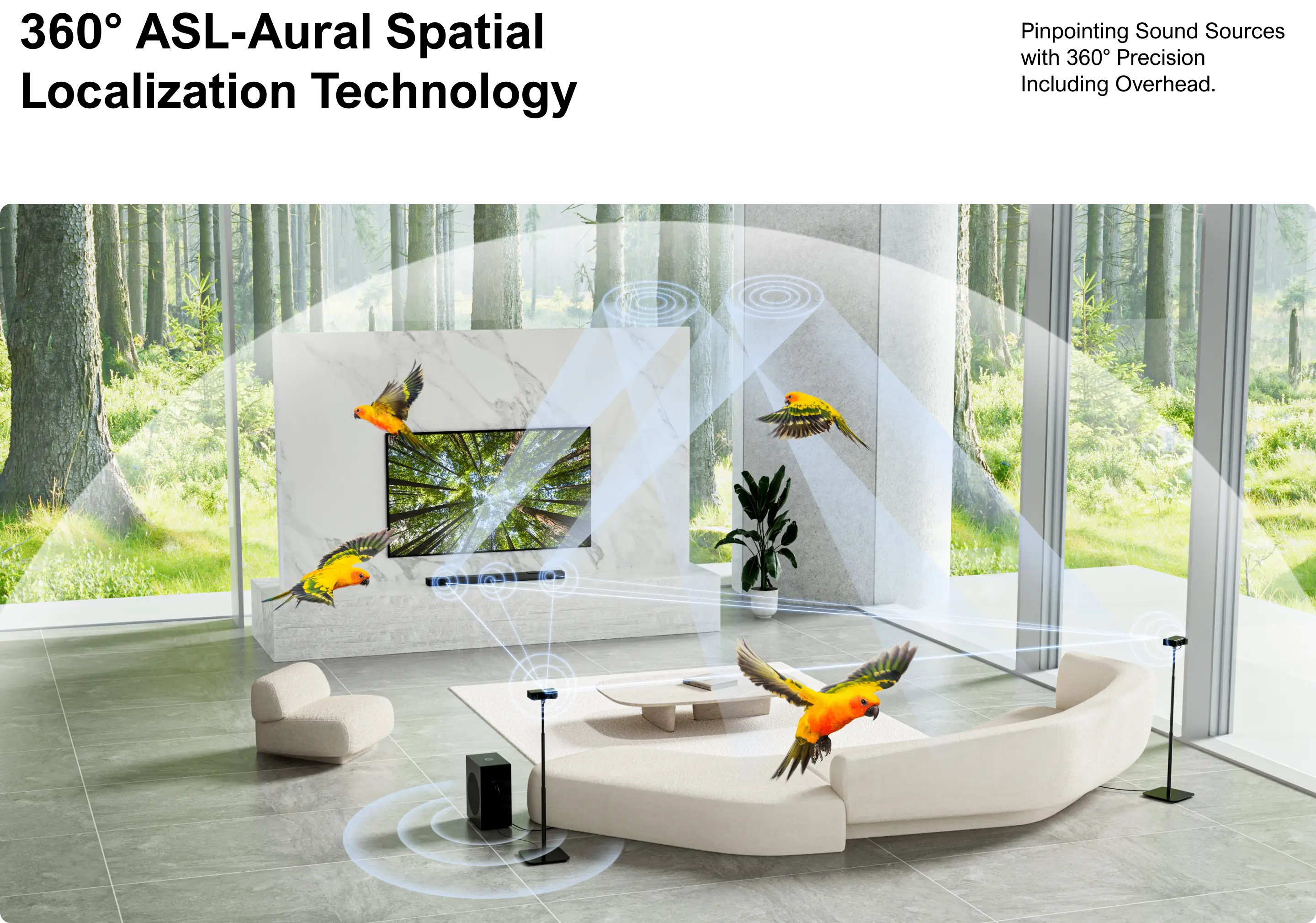- High-Performance Up-Firing Speakers for true overhead sound