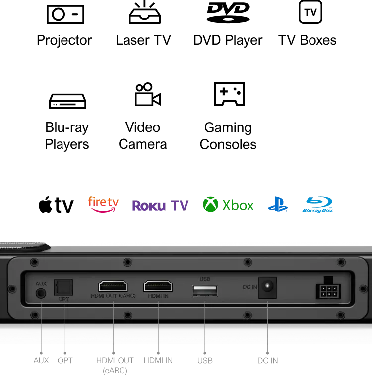 Effortlessly connects to a variety of devices, including 4K Smart TV.