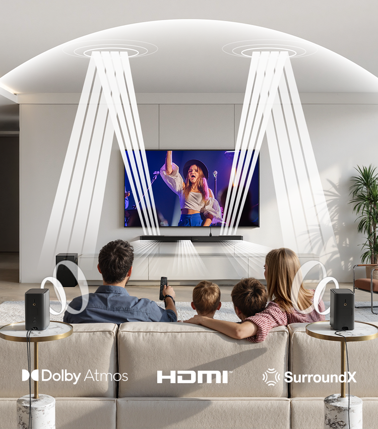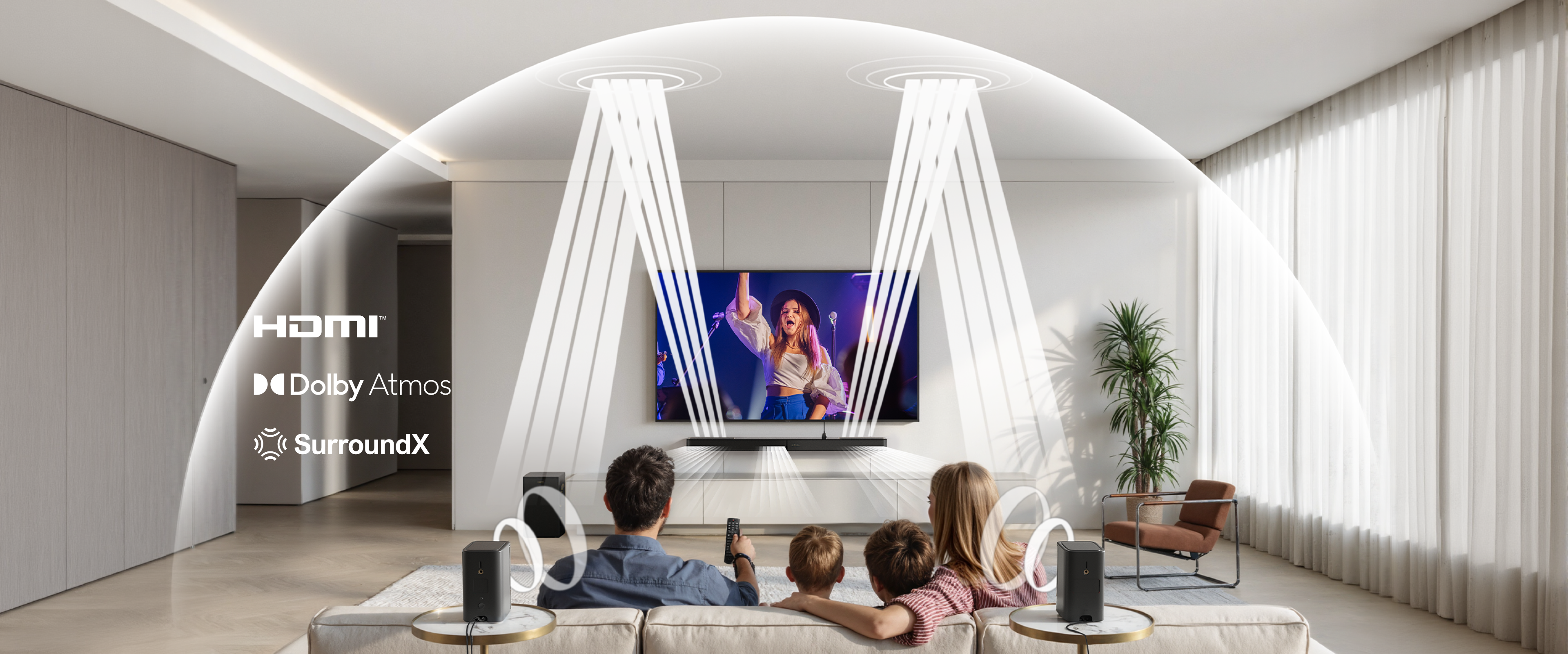 Dolby Atmos and SurroundX create a lifelike soundscape that surrounds you from every direction—even above.