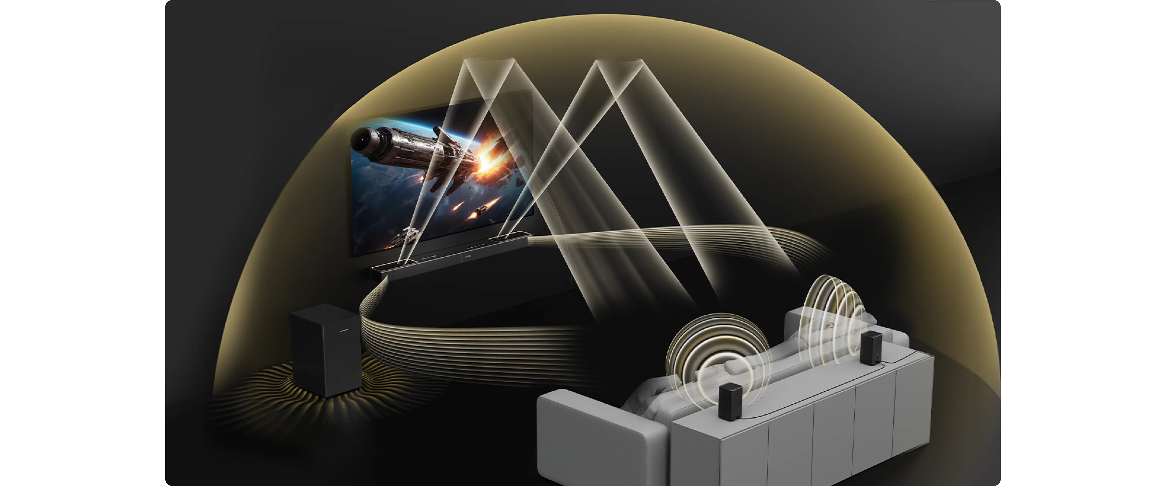 Dolby Atmos and SurroundX create a lifelike soundscape that surrounds you from every direction—even above.
