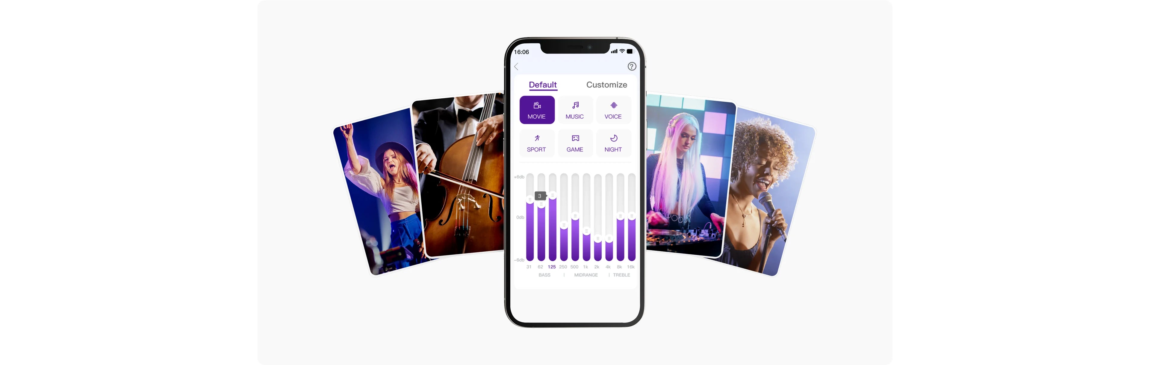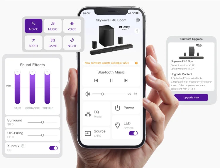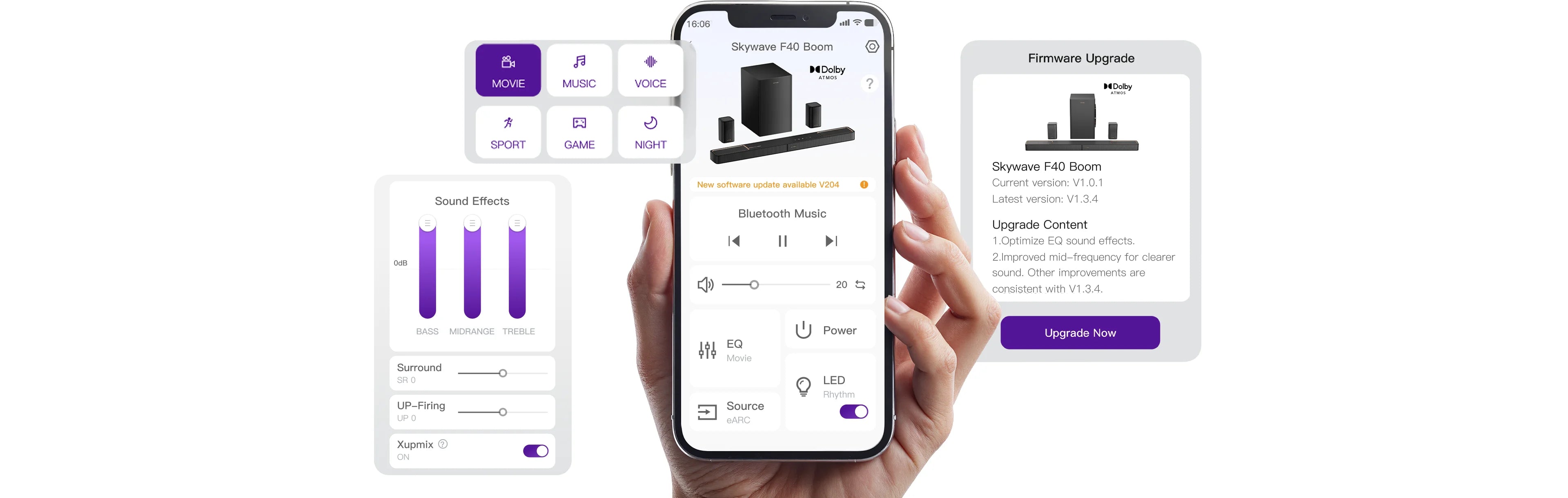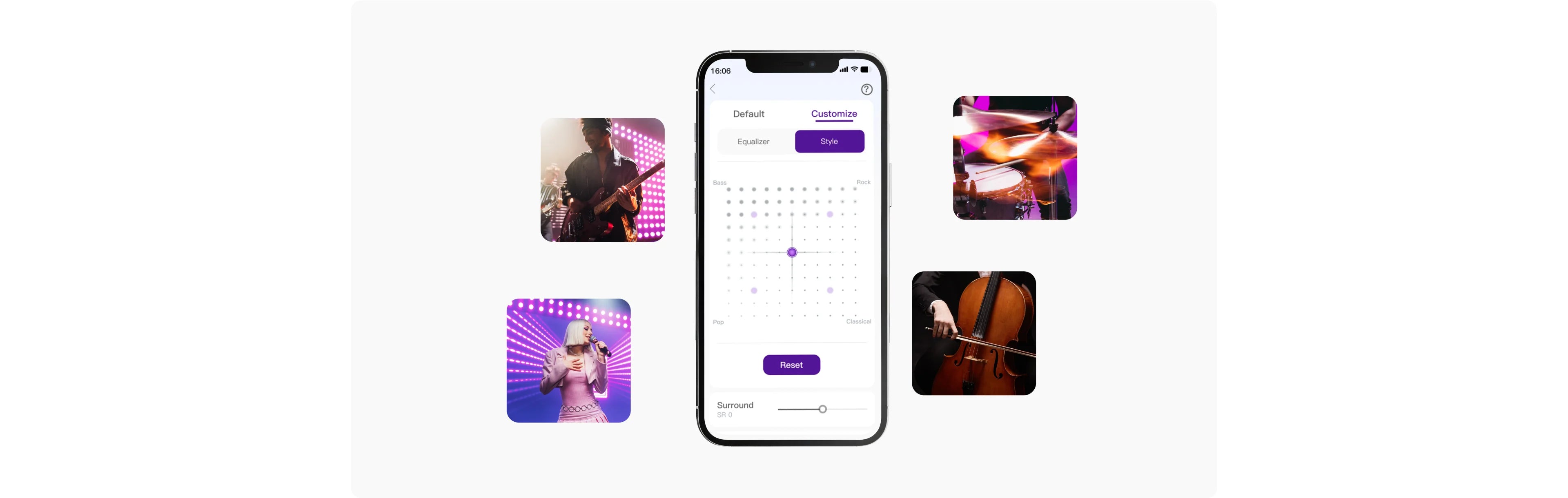Xupmix tech, powered by Dolby DAP, instantly transforms regular audio into rich multi-channel surround sound. One tap, immersive sound—even from non-Dolby sources.