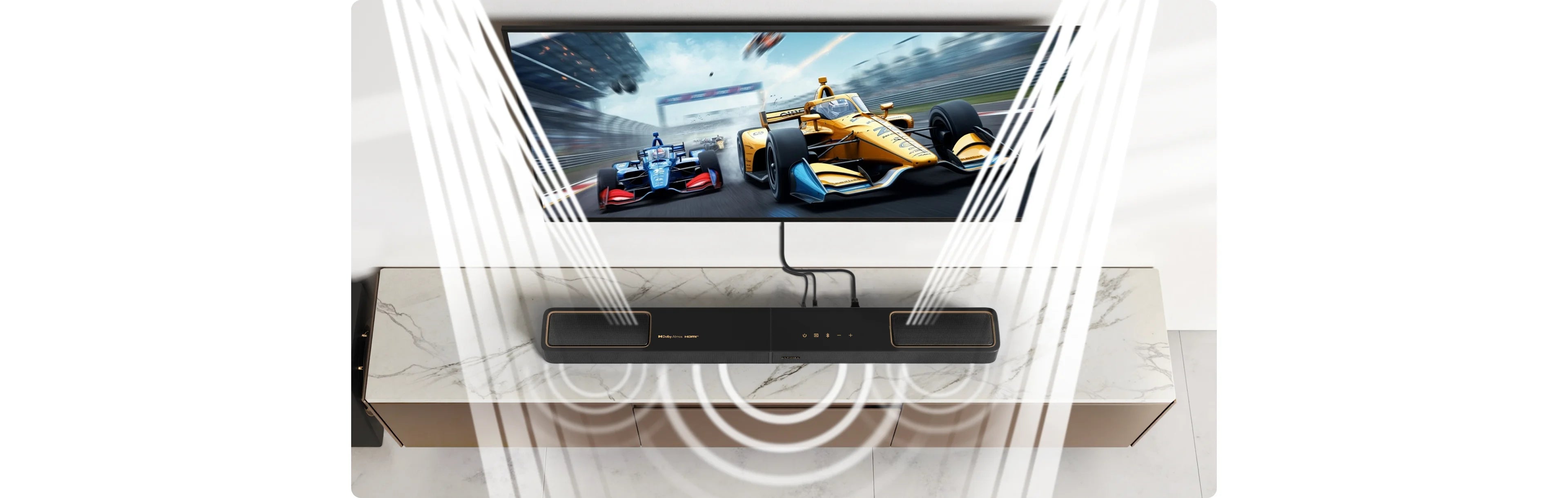 Experience immersive 3D audio with up-firing speakers that project sound above you.